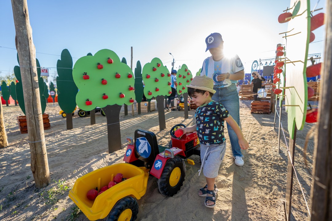 Cosechar en una mini chacra, manejar un mini tractor, embalar en un mini empaque, dibujar tu propia marca de fruta y elaborar jugos de manzana, es parte de la propuesta para que chicos y chicas sean protagonistas del circuito productivo de la manzana. Estará disponible el Viernes 20, sábado 21 y domingo 22, a partir de las 18 horas, en el ingreso por calle Tronador, frente al sector de expositores.