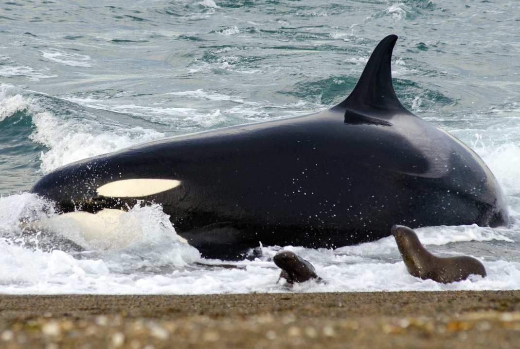 Las orcas de la Península Valdés son mundialmente conocidas por desarrollar una estrategia de alimentación única llamada varamiento intencional. Durante esta maniobra, los animales se impulsan deliberadamente fuera del agua en marea alta para capturar crías de lobos o elefantes marinos cerca de la orilla. Se trata de uno de los comportamientos predatorios más espectaculares de la vida salvaje marina y fue documentado por primera vez en 1974 en esta región.