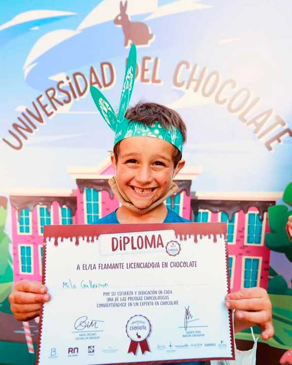 Circuito de actividades para niños donde se les entrega un pasaporte para que presenten a medida que pasan los distintos desafíos. Una vez completado el circuito se reciben de Licenciados en Chocolate. Cada vez que pasan un desafío se les sella el pasaporte. Al finalizar se les entrega un diploma.