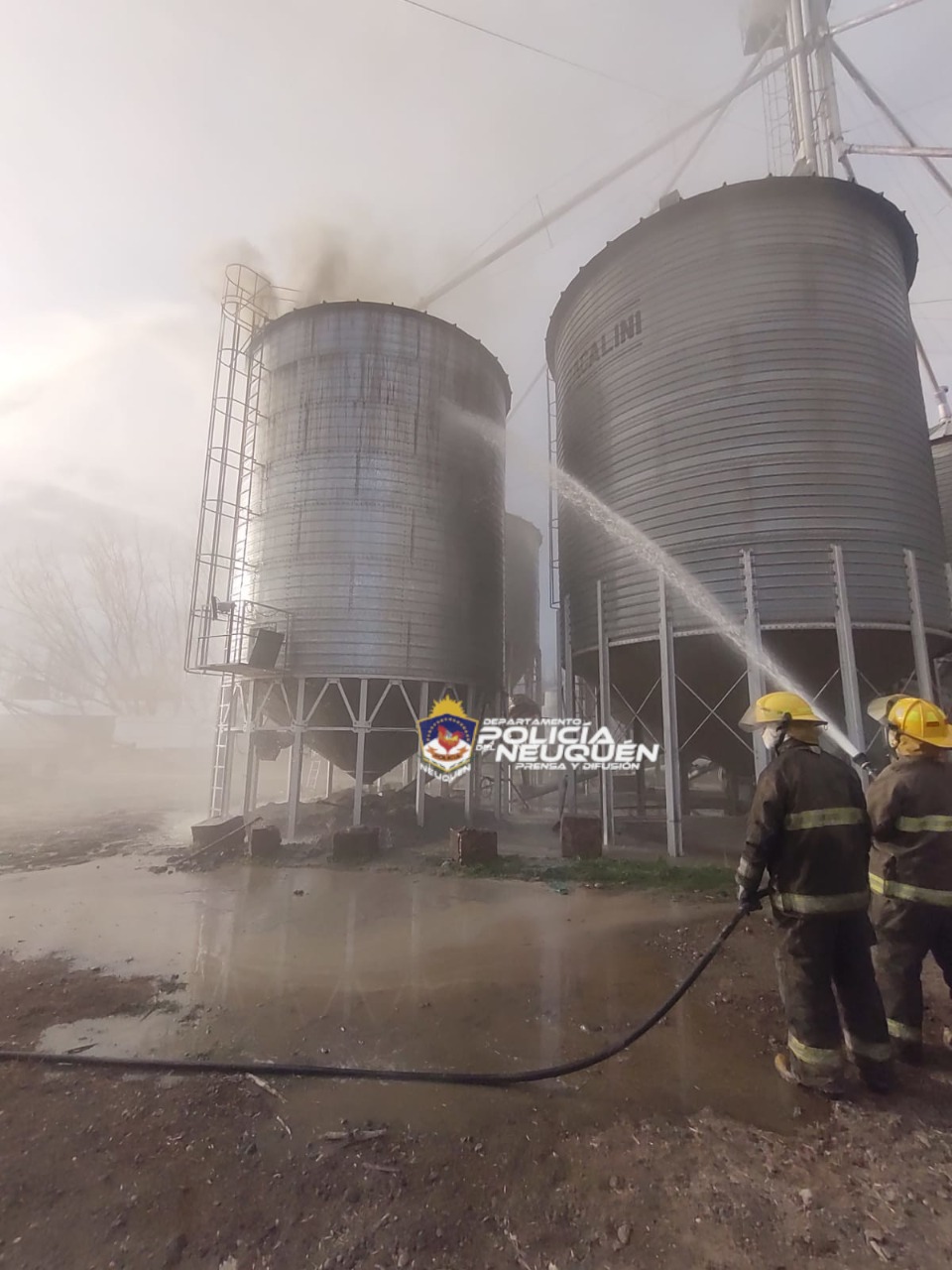 Bomberos de Neuquén debieron contener un tipo de incendio que es poco frecuente en la zona. La combustión se originó en el interior de un silo que contenía 30 mil kilos de granos en una granja avícola situada entre Ruta 22 y la calle Río Colorado, que establece el límite entre las ciudades de Neuquén y Plottier.