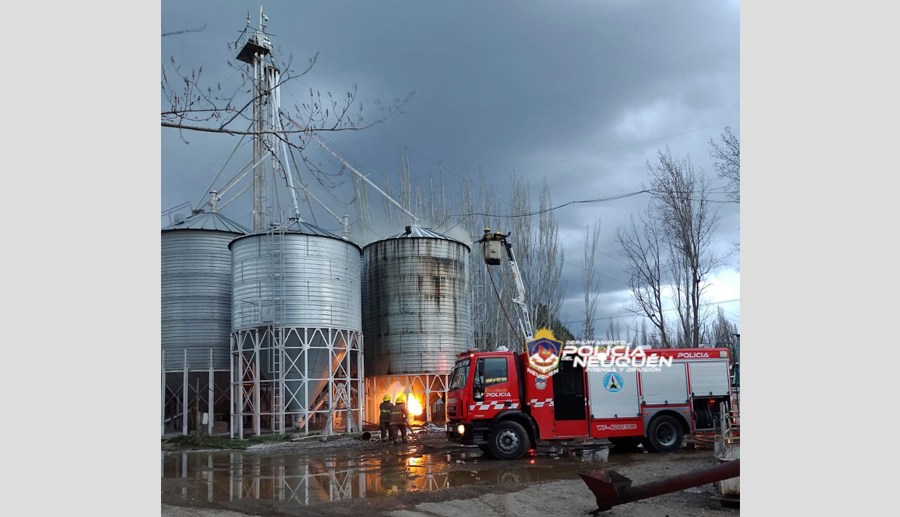 Bomberos de Neuquén debieron contener un tipo de incendio que es poco frecuente en la zona. La combustión se originó en el interior de un silo que contenía 30 mil kilos de granos en una granja avícola situada entre Ruta 22 y la calle Río Colorado, que establece el límite entre las ciudades de Neuquén y Plottier.