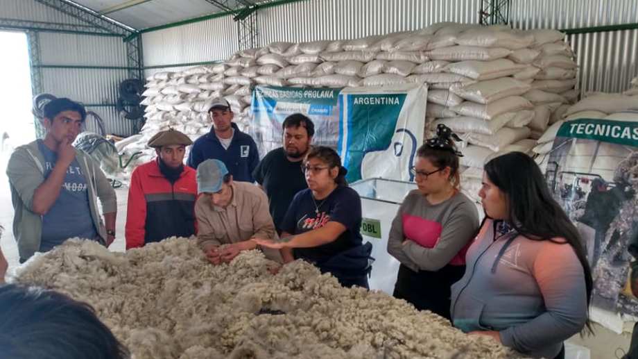 Buscando mejorar la producción de lana en la etapa previa a la comercialización, trabajadores vinculados al sector se capacitan en esquilas y acondicionamiento.