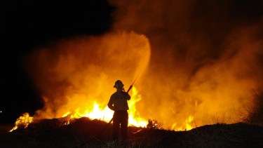 Bomberos de Guardia Mitre, Viedma y personal del Servicio Provincial de Lucha contra Incendios Forestales de Conesa trabajan pra contener un incencio de campo que se origió el domingo en la zna de la ruta Provincial N° 40.