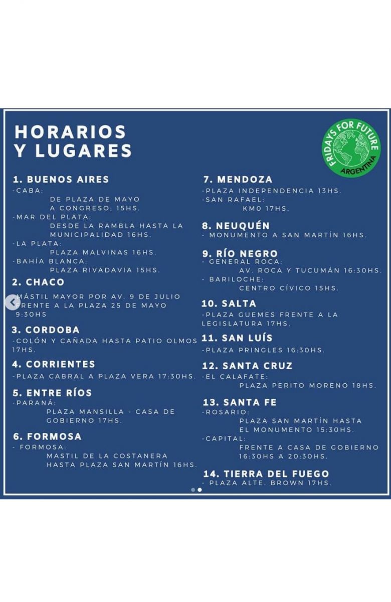 La movilización, que fue convocada por los movimientos Fridays For Future Argentina, Jóvenes por el Clima Argentina y Alianza por el Clima, comenzará a las 15 en la Plaza de Mayo y desde allí los asistentes se movilizarán para culminar la jornada frente al Congreso.