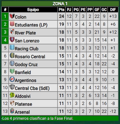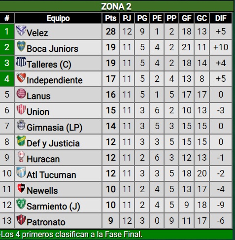 Vélez y Colón ganaron sus respectivos partidos el viernes pasado. Ambos están clasificados y son los líderes en las zonas 2 y 1 respectivamente. Ayer no se jugó por ser el Día del Trabajador y se juntaron varios encuentros para este domingo.