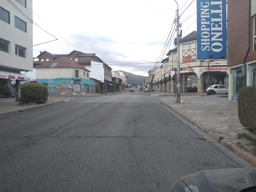 Por Onelli, donde funciona el comercio no turístico, la imagen es más o menos la misma. Bancos, el shopping, las tiendas, bares, heladerías, todo cerrado.