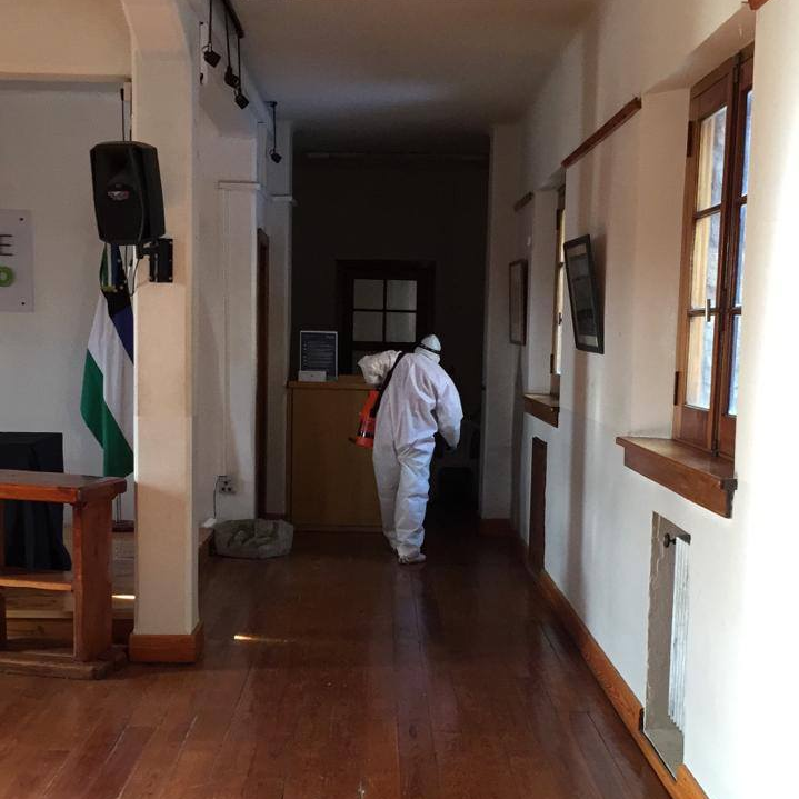 Empleados municipales hicieron el trabajo y habrá que esperar 24 horas para que actúen los productos que usaron. Mañana viernes se evaluará si vuelven a abrir el edificio.