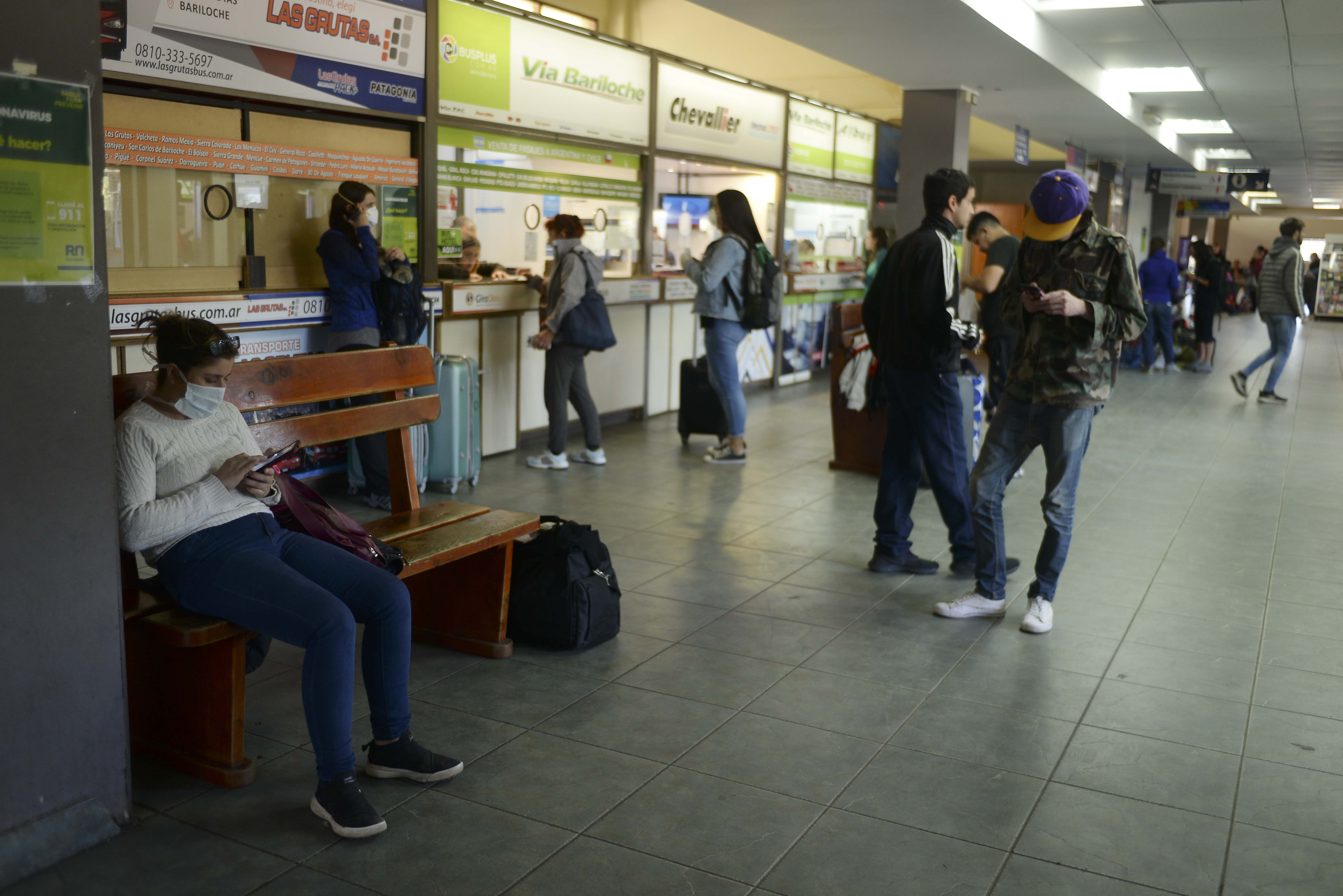 A horas de la suspensión de los vuelos de cabotaje y viajes en micros de larga distancia, la Terminal de Ómnibus comenzó a llenarse de pasajeros. Muchos de ellos, con barbijos y guantes de látex.