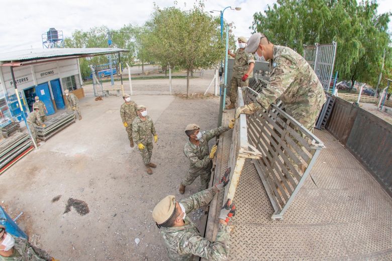 El Ejército Argentino comenzó con la entrega de camas que envió el gobierno nacional para montar un hospital en Roca destinado a la emergencia sanitaria por el coronavirus.