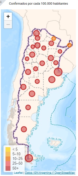 El total de acumulados por jurisdicción indica que la provincia de Buenos Aires suma 468.432 casos; la Ciudad de Buenos Aires, 134.992; Catamarca, 376; Chaco, 10.373; Chubut, 7.002; Córdoba, 51.817; Corrientes, 1.557; Entre Ríos, 9.390; Formosa, 128; Jujuy, 16.730; La Pampa, 1.070; La Rioja, 5.828; Mendoza, 32.035; Misiones, 154; Neuquén, 12.125; Río Negro, 16.514; Salta, 15.136; San Juan, 1.204; San Luis, 2.232 ; Santa Cruz, 6.345; Santa Fe, 62.899; Santiago del Estero, 4.826; Tierra del Fuego, 6.424; y Tucumán, 26.617.