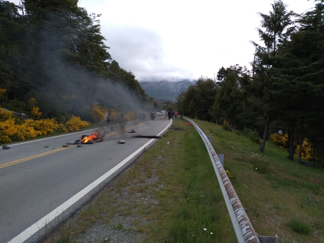 Este lunes los jóvenes mapuches encendieron neumáticos y cruzaron ramas sobre el asfalto para atraer la atención y denunciar que con ellos y la muerte de Nahuel no se estaba haciendo justicia.