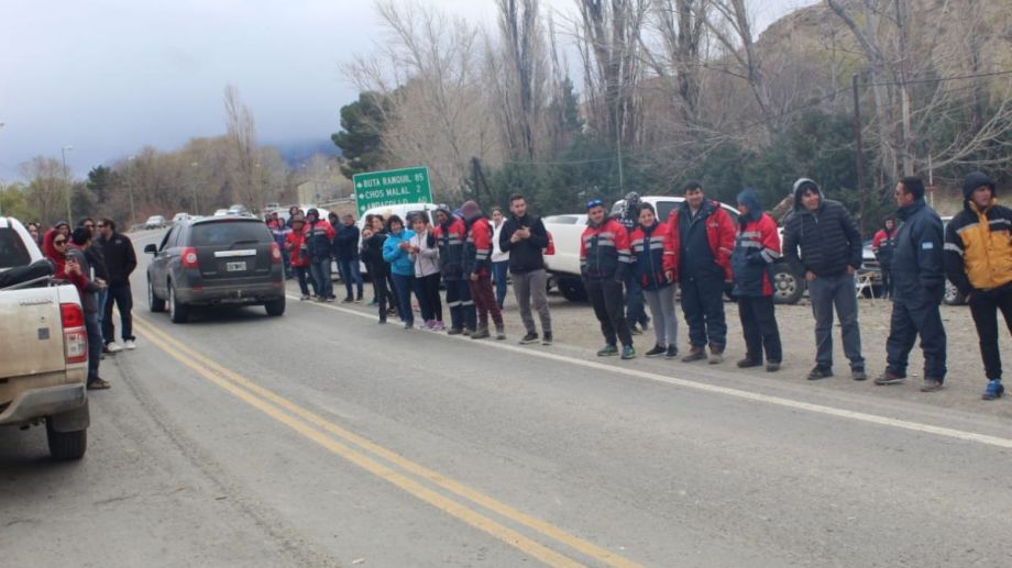 Los trabajadores se apostaron en el ingreso a Chos Malal luego de que fracasó una reunión en la Subsecretaría de Trabajo, en la que no se hizo presente ningún representante de la firma de capitales suizo-chilenos.