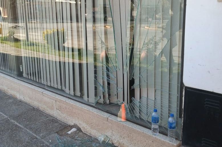 Se indicó que ayer por la mañana, un grupo de afiliados provocó destrozos e intentó prender fuego un sector de la municipalidad.