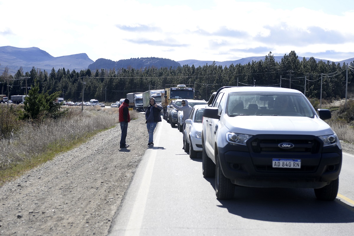 El corte total de la ruta 40 que encabeza el sindicato Uthgra Bariloche, a la altura del desvío a Ñirihuau y a metros del retén del barrio Las Chacras, ya genera extensas filas de autos, colectivos y camiones, del lado de Bariloche y Dina Huapi.