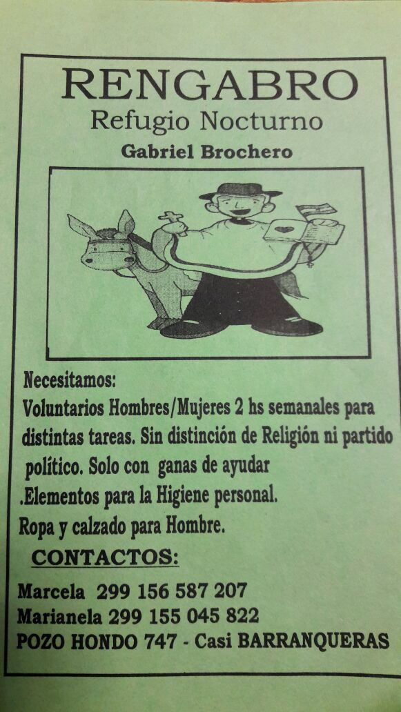 La ONG Red Solidaria está realizando un relevamiento en la ciudad. Además, piden elementos de higiene personal y abrigo para el refugio de adultos “Brochero”.