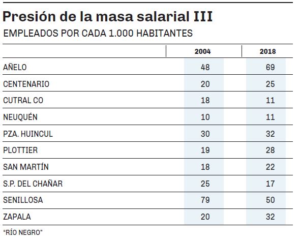 Para el cierre de 2019 se proyecta que los municipios neuquinos terminarán con una planta de personal superior a los 10.000 empleados. A esto hay que sumar que en cada ciudad existen trabajadores provinciales y nacionales.