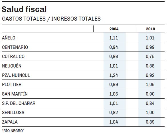 Senillosa necesita cuatro años de su recaudación propia para poder cancelar los salarios de un año. Viene de un indicador mucho peor: 11 años y medio necesitaba en 2004. Zapala, Plaza Huincul y Centenario están en el lote de intendencias que más que duplican los años para cancelar salarios.