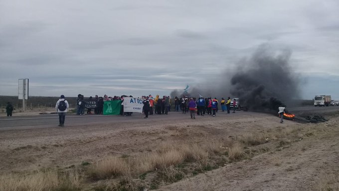A este reclamo se sumó otro corte, en el norte del Chubut, a la altura de Puerto Madryn, protagonizado por viales, docentes y trabajadores de la sanidad que también prometen extender la medida hasta el miércoles.