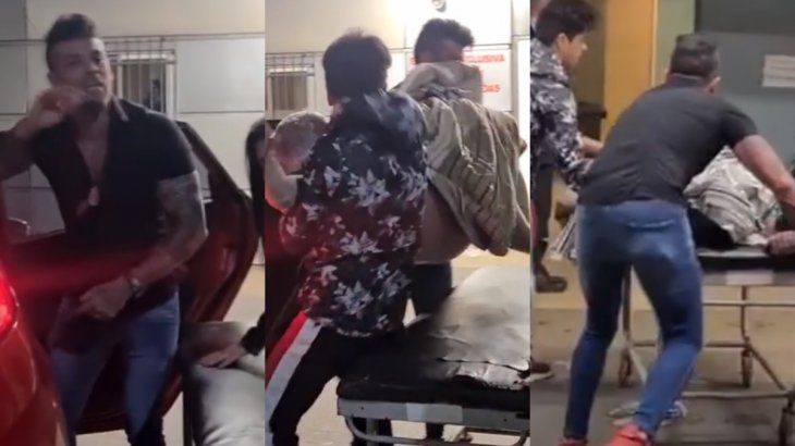 Las imágenes fueron registradas en las puertas del centro de salud. Se observa al ex Gran Hermano sacando a su padre inconsciente de la parte de atrás del auto, para subirlo a su camilla sin asistencia de personal.