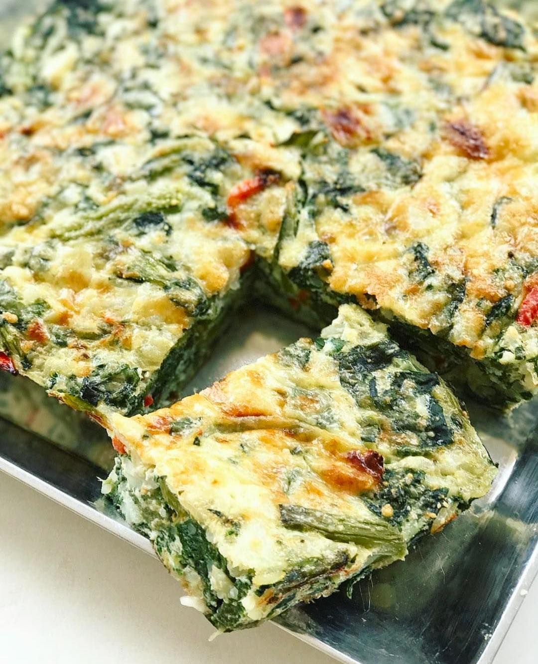 Precalentar el horno a 180°. Picar la cebolla y el morrón y saltearlos en una sartén previamente aceitada. Una vez listos mezclar todos los ingredientes (excepto el queso) dentro de un bol y echarlo sobre un molde cuadrado, previamente aceitado, o rectangular de silicona. Agregar por encima el queso parmesano y llevar al horno por 30-40 minutos (hasta que gratine) y listo.