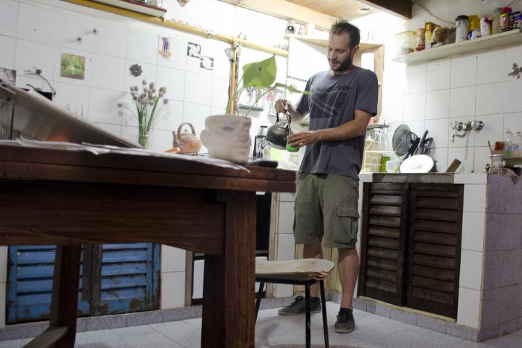 Además de su trabajo como escultor “Sock” lleva adelante, junto a un amigo, un proyecto de macetas de cerámica.