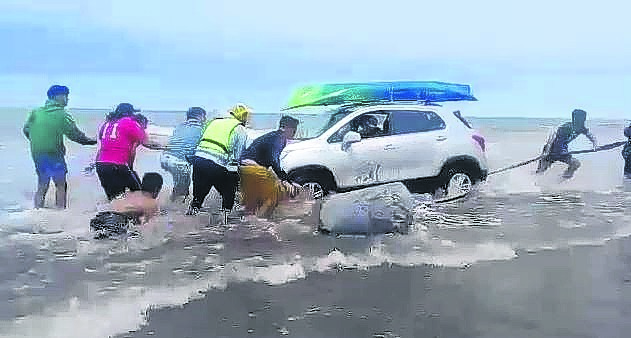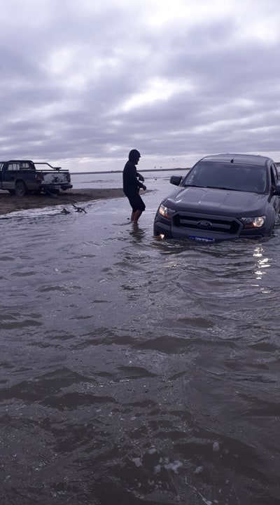 Cuando la marea te está por llevar el auto en El Cóndor… te salva Daniel
