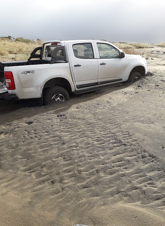 Luego tuvo que actuar para que una camioneta de la policía provincial pudiera recuperarse, tras quedarse encajada en la zona de acantilados a unos 15 km de El Condor, en El Espigón. «La sacamos a las 2 de la madrugada. La trajimos a remolque, no tenía luces. Iba con la cabeza afuera tratando de ver«, comenta.