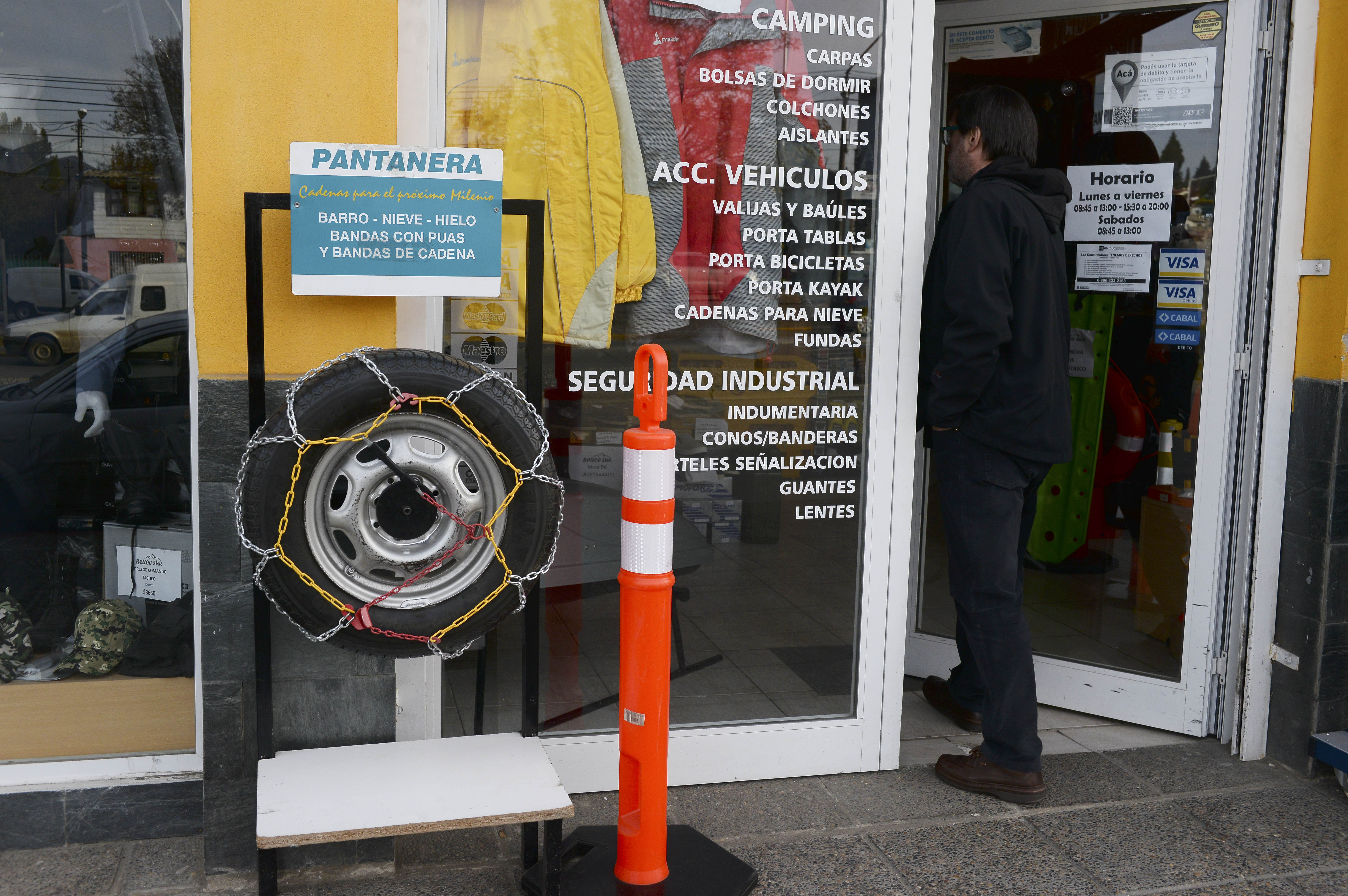 Antonio, de Belloc Sur, dijo que ya se activó la demanda de cadenas de este año. En el local de la zona de Ñireco, este comercio ya tiene exhibidos sus productos para la nieve, desde los “culipatines” (deslizadores) y los trineos, hasta calzado y abrigo.