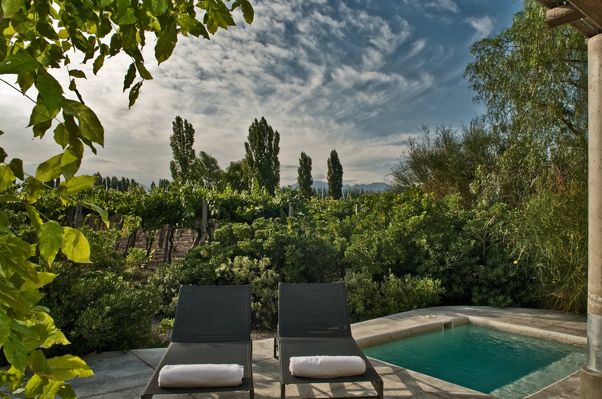 Tiene viñedos propios, una cava subterránea repleta de botellas, baños de vinoterapia en el spa y habitaciones que en realidad son departamentos de 90 metros cuadrados.