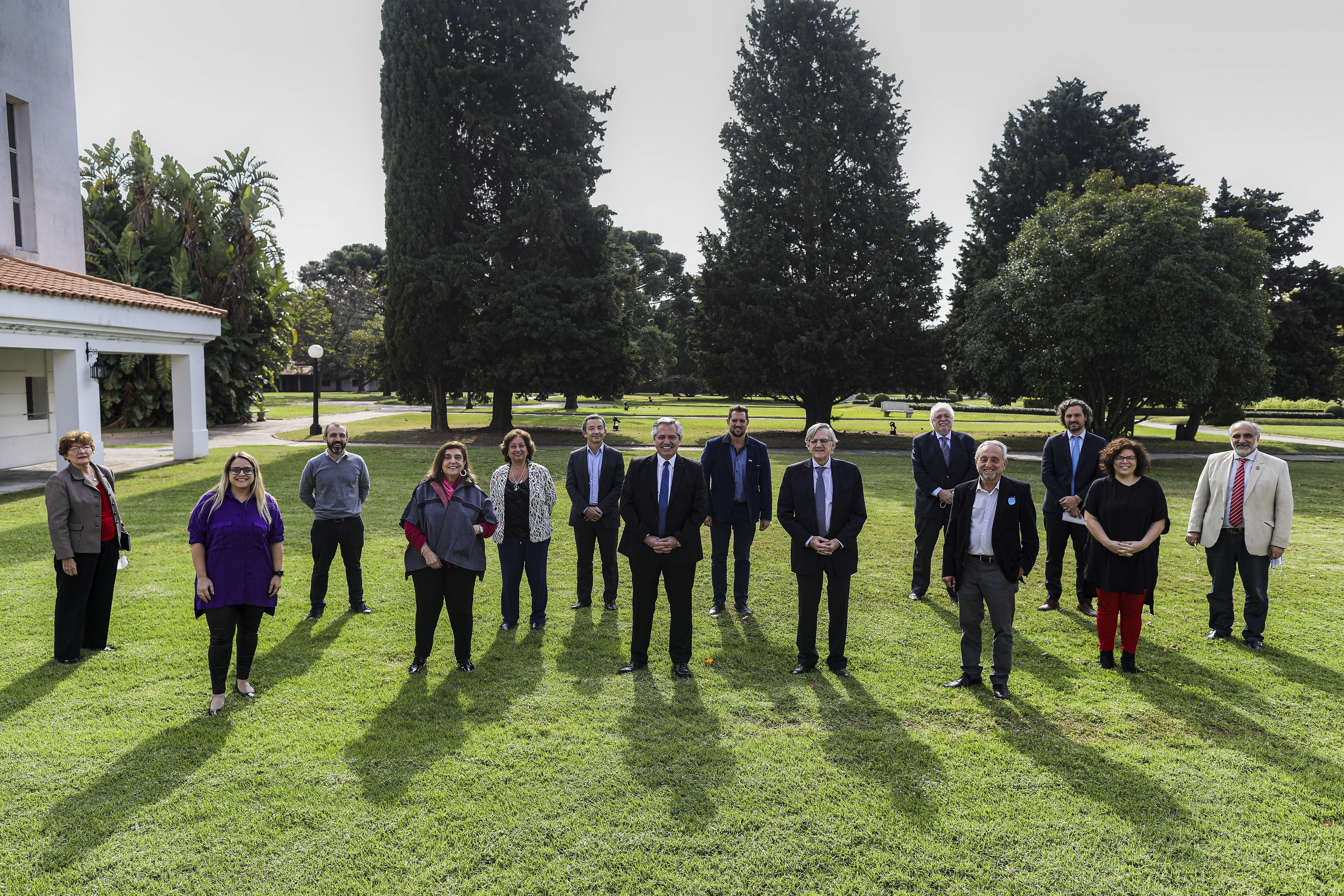 Al término del encuentro de hoy, el Presidente y sus colaboradores se tomaron una foto todos juntos en el parque de la residencia, al aire libre, aunque manteniendo la distancia social sugerida para evitar la propagación del coronavirus.