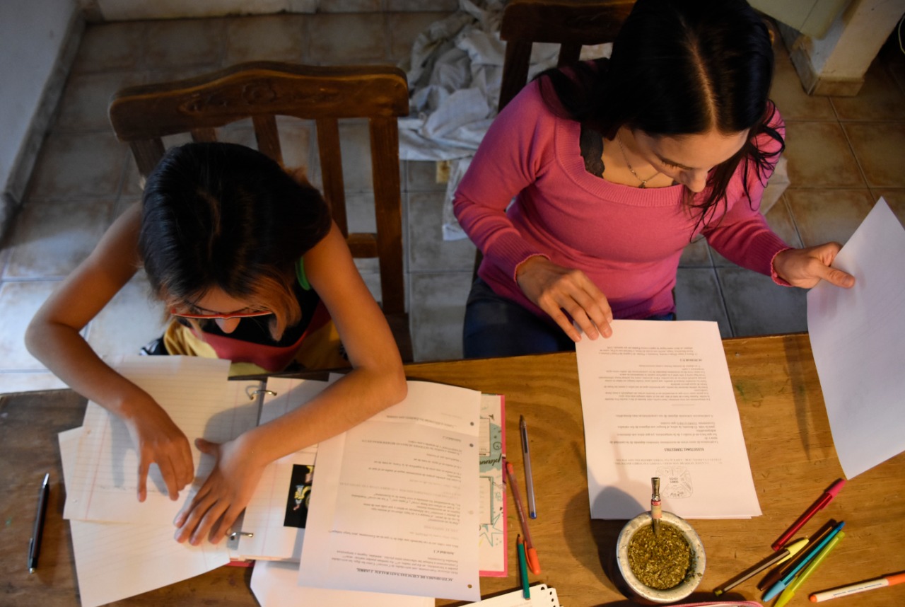 La organización varía según el día. “El más grande tiene mucha tarea y me lleva bastante tiempo. No es lo mismo que vaya al colegio, que tiene su lugar, que sentarse acá y que le decís la palabra tarea y le da alergia. Todo requiere que los padres estemos presentes. Si yo me siento con ellos es para hacer la tarea, no me puedo parar y ponerme a hacer otra cosa porque terminan no haciéndola”, plantea.