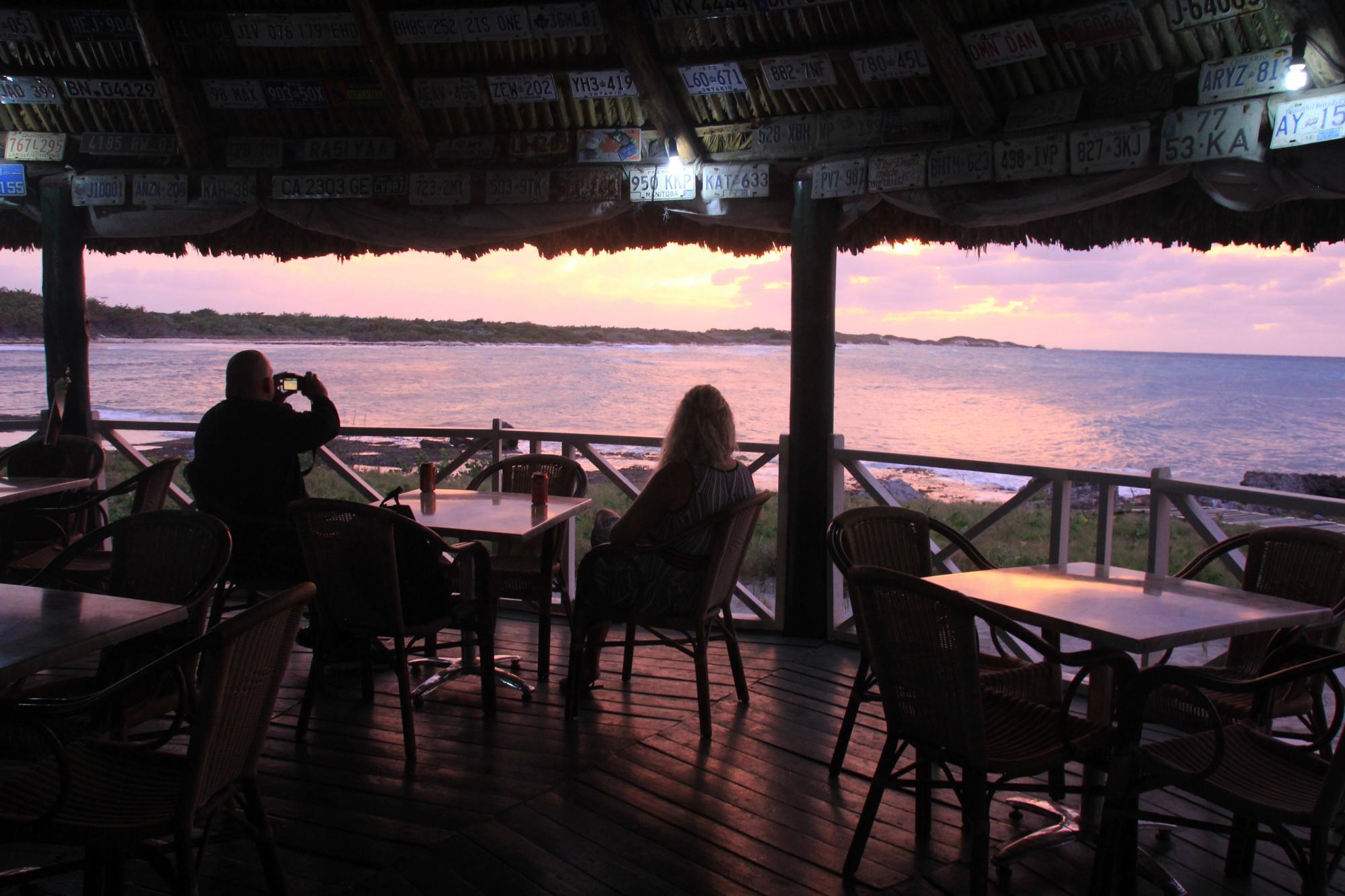 Desde La Llanita hacemos 360 kilómetros hasta Cayo Coco. Entramos por un extenso terraplén, y a los lados busco el centenar de flamencos que había visto en fotos. Pero en esta época del año -entre febrero y marzo- se esconden. Nos alojamos en la única hostería popular del lugar, ya que los demás son resorts. La tarde está nublada, el viento no invita a asolearse, pero siempre hay ofertas para el turista: una pareja estadounidense monta a caballo por la arena.