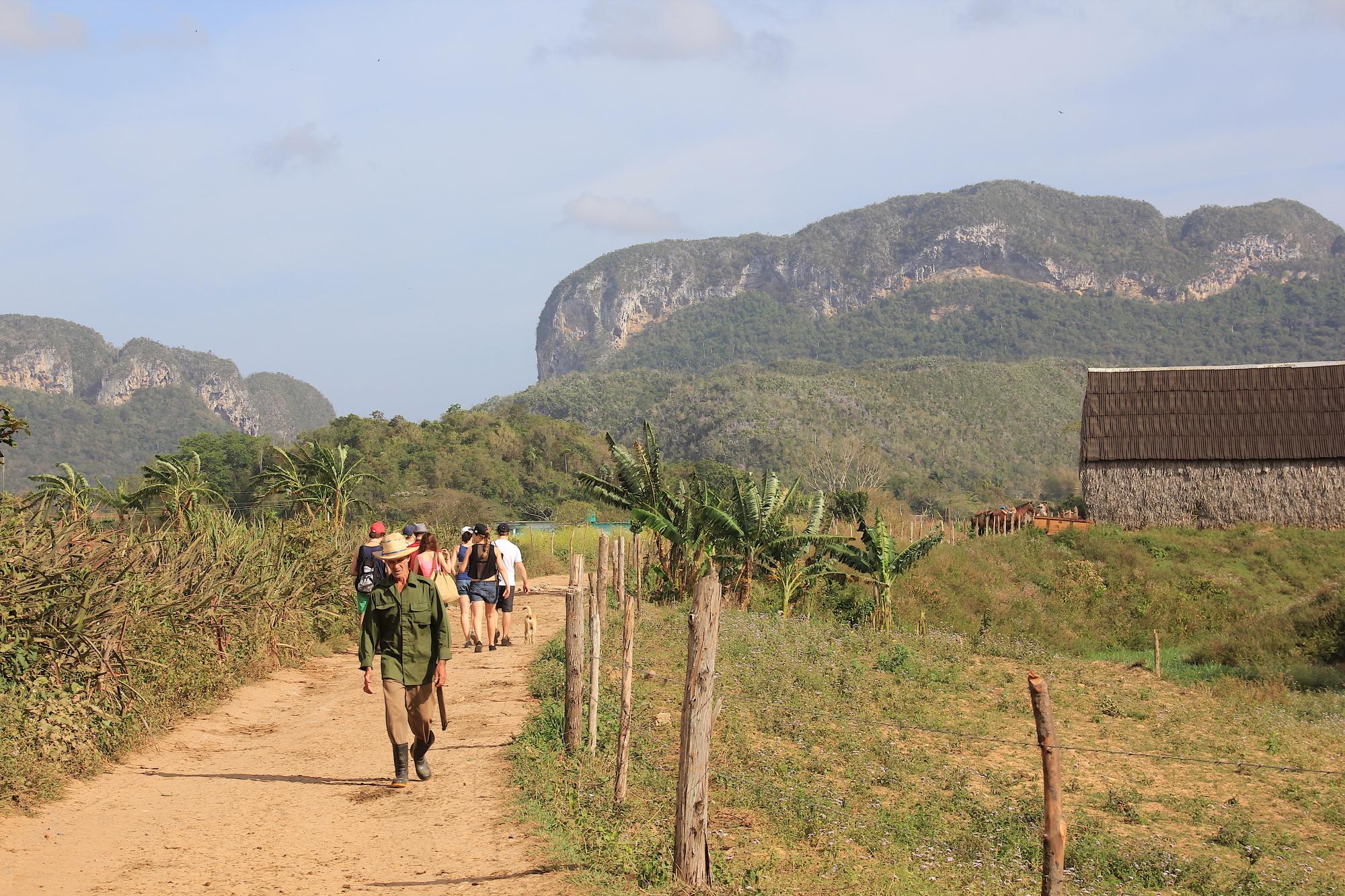 En una hora de ruta, en bastante mal estado, llegamos desde Viñales a Cayo Jutías. El paisaje es precioso: verde, valle, montañas, plantaciones de tabaco, mango, banana y papaya, vacas y caballos sueltos en la ruta. Llevamos a tres jóvenes que hacen dedo. Cursan segundo año de medicina. Dicen que están orgullosas de Cuba y que, a diferencia de varios amigos, se quieren quedar. Pero que les gustaría que las dejaran visitar otros países.