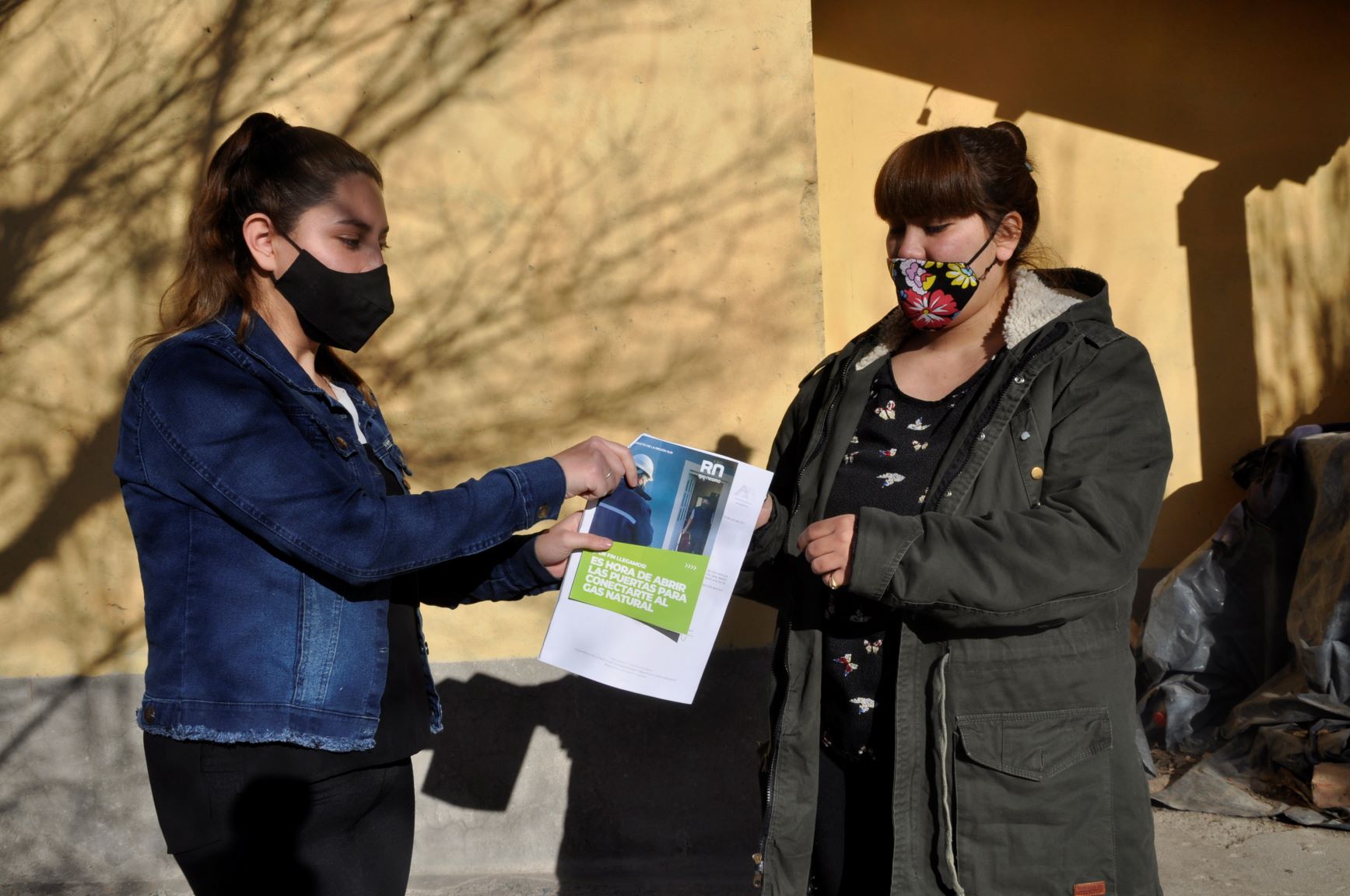 «Le entregamos a los vecinos folletería con información sobre el gas natural y lo que implicará la reconversión del servicio. Los vecinos nos reciben muy bien y se ponen contentos cuando las visitamos” señaló Celeste Valenzuela, una de las cinco jóvenes que desde hace una semana recorre las calles de Maquinchao distribuyendo folletos.