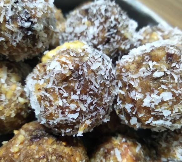 Procedimiento: hidratar las ciruelas en agua caliente y un chorrito de wisky (opcional). Miexear todos los ingredientes y formar una masa que sea maleable con los dedos. Formar bolitas y rebozar en coco. (Las cantidades son a gusto). Llevar a la heladera y consumir bien frías.