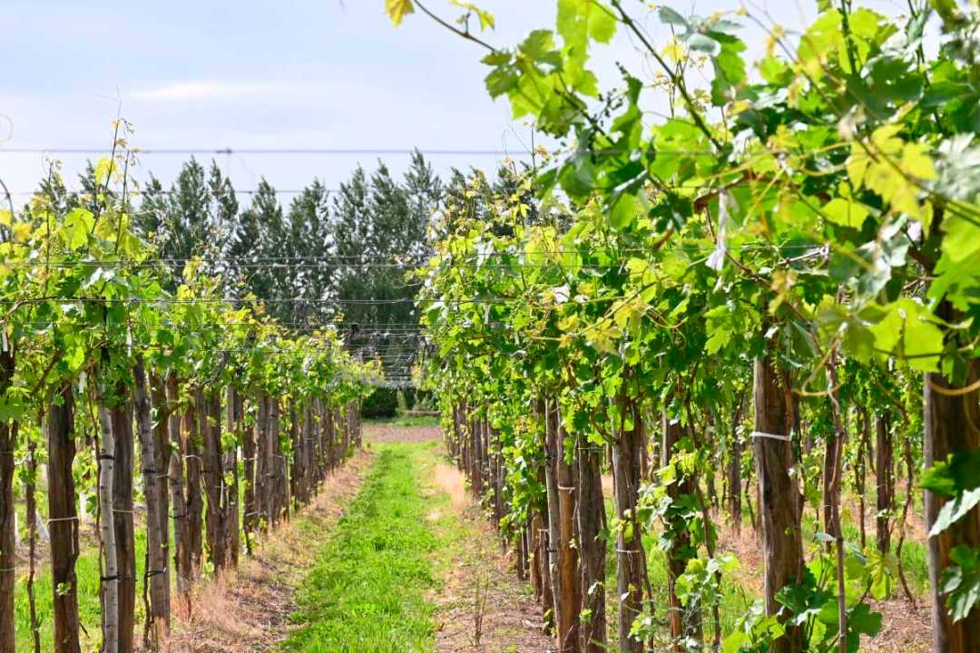 La familia está instalada en la chacra de Huergo desde hace ya más de cuatro décadas. Empezaron con la producción de peras y manzanas y hace algunos años sumaron viñedos con las variedades de uva Malbec, Merlot, Sauvignon Blanc y Cabernet Blanc. Ahora piensan incorporar un viñedo de Pinot, una cepa con óptimo desarrollo en los terruños del Alto Valle.