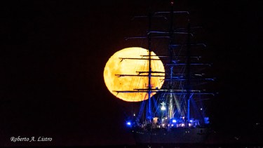 Una de las fotografías que más disfruté hacer, fue cuando la Fragata Libertad visitó Puerto Madryn. Coincidió con la Luna llena, y como expliqué anteriormente, lograr la composición de posicionar la luna detrás de la fragata fue todo un desafío, y obviamente tuve que correr por la costa con la cámara a cuestas hasta lograr lo que deseaba.