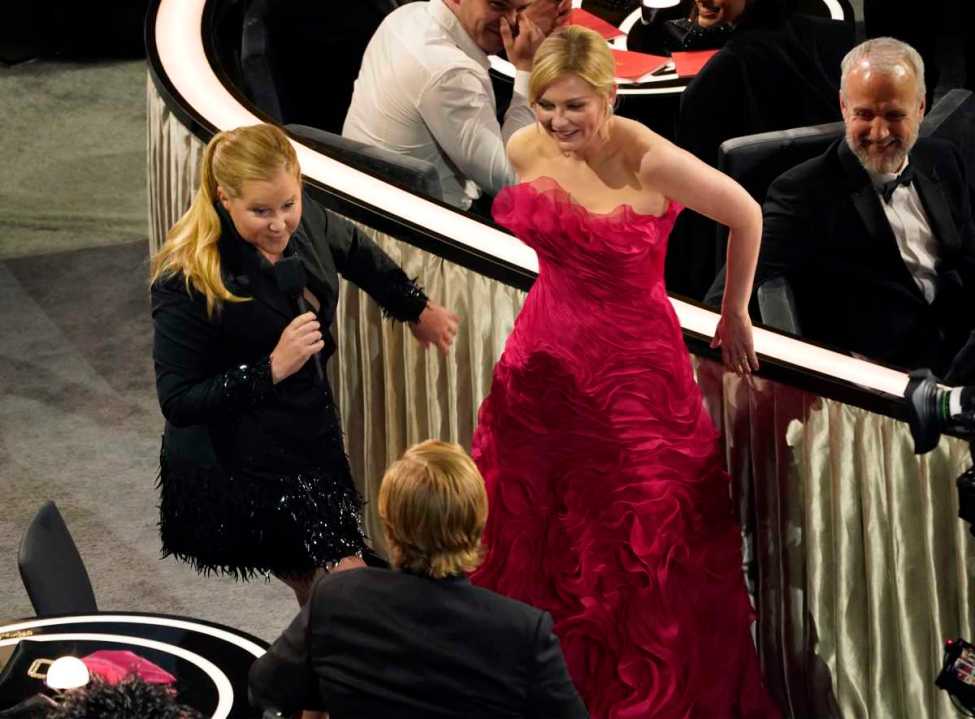 Schumer se acercó a Kirsten Dunst, nominada a mejor actriz de reparto, y Jesse Plemons, nominado a mejor actor de reparto, ambos por la película “El poder del perro”. Schumer paseaba entre las estrellas mientras hablaba de los “rellena asientos”, esas personas que acuden a la gala sólo para sentarse cuando un actor se levanta, para que en la pantalla no se vean espacios vacíos. “Les explicaré lo qué hacen los rellena asientos. Aquí tenemos a una (dijoseñalando a Dunst). ¿Te puedes levantar e irte al baño, cariño?”, le dijo Schumer a Dunst mientras la echaba de su asiento para sentarse con su marido, Plemons. “¿Sabías que esa es mi esposa?”, le preguntó él, y ella bromeó: “¿Estás casado con esa rellena-asientos? Eso sí que es raro”. Es posible que a Dunst no le cayera bien. Y tampoco a los “rellena asientos”. Y tampoco a Plemons.