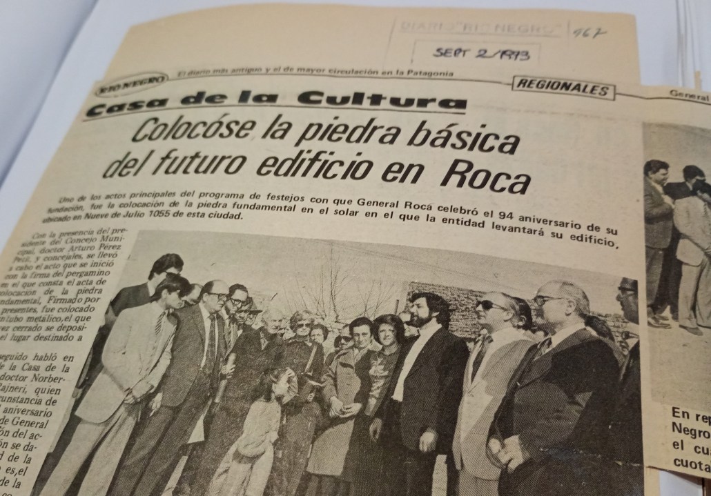 El sábado 2 de septiembre de 1972 Diario RÍO NEGRO publicó en la sección de Regionales la noticia que muchos esperaban, después de tener que desarrollar las actividades del grupo “Casa de la Cultura” en distintas sedes: se colocaba la piedra fundamental del edificio de calle 9 de Julio, en Roca. Desde entonces se volvió espacio de formación y expresión de referencia, para todo el que “quisiera crear, compartir y participar”, como recordaron en este 53° Aniversario.