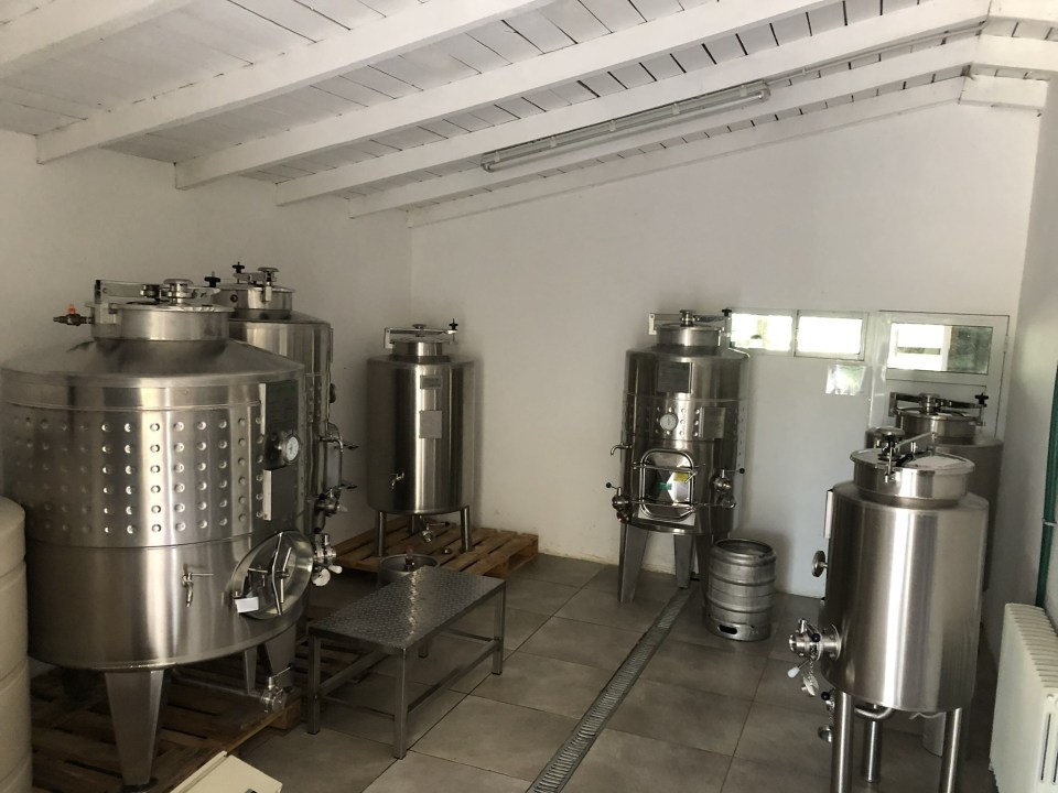 Contamos con 1 hectárea de vid, media de Merlot y media de Pinot Noir y un poco de Gewürztraminer que nos rinden en total unos cinco mil litros de vino por año.
