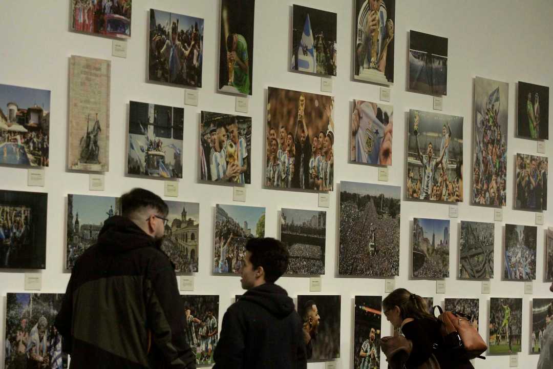 Otros varios metros de pared están dedicados al mundial. A los festejos, a los jugadores, a los hinchas, a Messi, Dibu, Di María. Otro grupo de fotos es de juicios, marchas y manifestaciones. Otro de músicos y recitales. Y también otro de políticos, donde se ve a Javier Milei con chaleco antibalas, a Cristina Fernández de Kirchner y al preciso momento en que Martin Guzman, exministro de Economía, mira por la ventana de la Casa Rosa y a su lado, con la sombra en la cara, a Alberto Fernández.