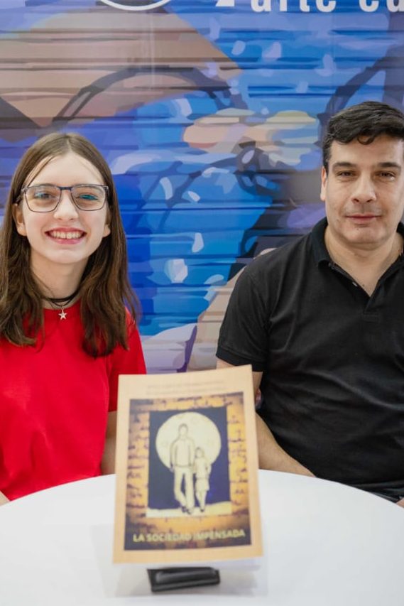 Juan Martín y Clara son de Zapala, son padre e hija y escribieron juntos un libro de cuentos: «La sociedad impensada»