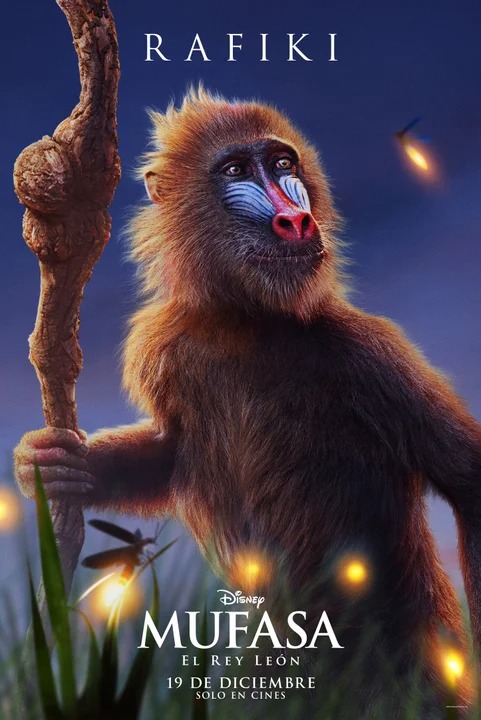 En el film «Mufasa: El Rey León», Rafiki narra mediante flashbacks la aventura que lleva a Mufasa a forjar un poderoso vínculo fraternal con Taka, posteriormente conocido como Scar. Juntos, se embarcan en un viaje memorable que introduce carismáticos habitantes de las Tierras del Orgullo desconocidos hasta ahora y reconecta a los fans con queridos personajes de la saga de «El Rey León».