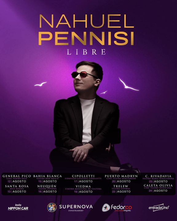 Nahuel Pennisi se presentará en Neuquén el 16 de agosto en el Cine Teatro Español, en Cipolletti el 17 de agosto en el Complejo Cultural Cipolletti y por último en Viedma el 19 de agosto en Centro Municipal de Cultura.