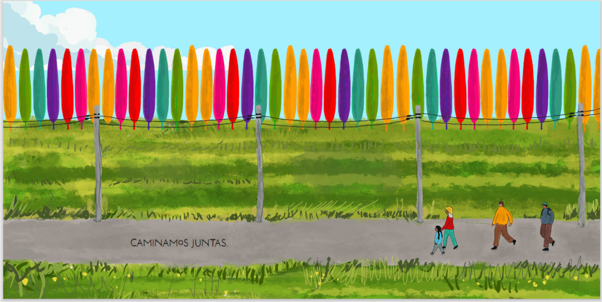 “El proceso de hacerlo también fue como un juego. Escribí la historia, se la mandé a Marina y, por las características pensamos en hacer un libro álbum. Fue un proceso largo porque un libro álbum lleva mucho trabajo conjunto. Hay que tener en cuenta que la imagen no repita el texto, por ejemplo, y eso pasaba al principio. Entonces, cambiamos el texto. Pero seguíamos notando que algo no funcionaba, así que lo dejamos un tiempo, en reposo, y después volvimos, yo a escribir y ella a dibujar”.