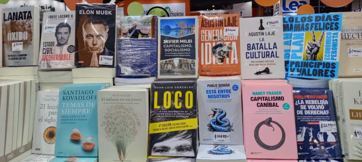 En el stand de la librería Cúspide dicen que entre los más vendidos figuran los libros “Vida, Mi historia en la historia”, del papa Francisco; “Capitalismo, socialismo y la trampa neoclásica”, de Javier Milei, y “Milei”, la revolución que no vieron venir”, la biografía que escribieron Marcelo Duclos y Nicolás Márquez, editada por Hojas del Sur, que será presentada el próximo miércoles 8 por sus autores en la Feria. “Pero lo más vendido es la ficción. Acá vienen lectores”, dice tajante el vendedor, zanjando una diferencia que nadie preguntó.