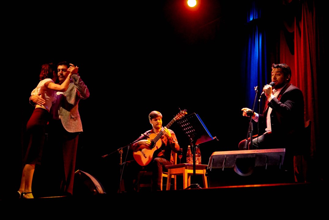 Una biaba tras otra, así está siendo este 2024 para el dúo de tango barilochense conformado por Roberto Menant, en voz; y Juan Cruz López Valiente, en guitarra clásica. Un año que transcurrió entre decenas de presentaciones, entre ellas los shows en el teatro de La Usina Cultural del Cívico, antes conocido como la Biblioteca Sarmiento o, más aun, “la Biblio”, la grabación de un disco de estudio que aun está sucediendo y el registro de un vivo íntimo en la biblio de la Biblio, es decir entre libros y con una inmejorable ventana al lago.