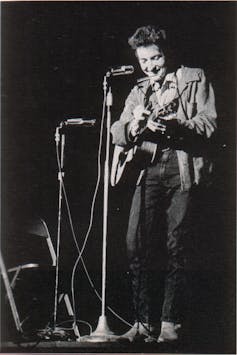 Para la lógica de estudiosos, periodistas y críticos del folk, Dylan se emparejaba con lo más “bajo” del “bajo folk”: no respetaba las normas de interpretación de las grabaciones canónicas, retorcía el lenguaje y sustituía letras, dejes y acordes a su antojo cuando subía a las tablas de los locales ocasionales –el Gerde’s Folk City, el Gaslight Cafe o el Cafe Wha?–. Lo hacía desde una performance algo bipolar: a medio camino entre Chaplin o Buster Keaton y el melodrama congénito del joven itinerante, sin casa ni familia.