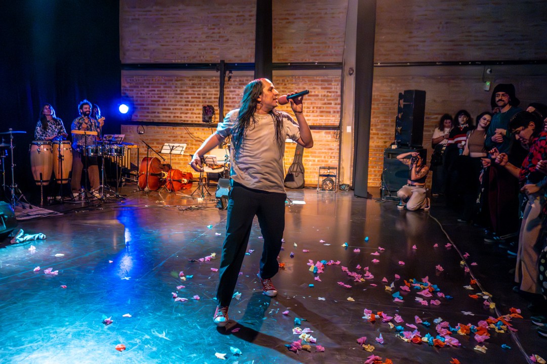 Cuando se lo propuso a su coreógrafa, esta le dijo ok, pero vamos a tener que meternos en lo que es un arte marcial, porque a esto más o menos lo tenemos que entender. “Entonces, me metí a hacer un arte marcial que se llama kendo, se llama iaido, que es como para aprender a usar la espada, desenvainar, usar los katanas, más o menos entender como la cosmovisión, la marcialidad y la parte artística. En base a eso empecé a crear las coreografías de combate para la obra en sí. La primera vez que lo hicimos fue el 16 de agosto pasado, que fue como una pequeña obra, como el soundtrack de la canción, tocada por los músicos en vivo, lógicamente, porque ya estaban ahí, y con los actores haciendo la representación”.