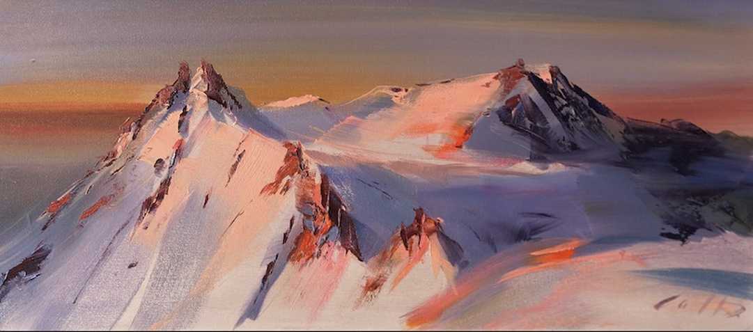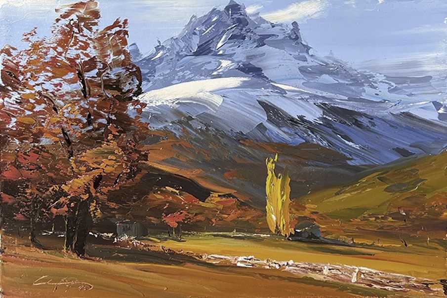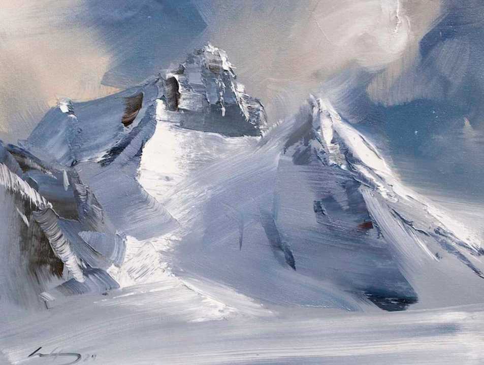 En atelier es el mismo proceso, busco en qué sintonía estoy, todo lo que se pinta tiene un simbolismo oculto; si es montaña: de día, de noche, nublado, atardecer, con niebla, todas ellas te cuentan una historia diferente, cada búsqueda tiene un propósito.